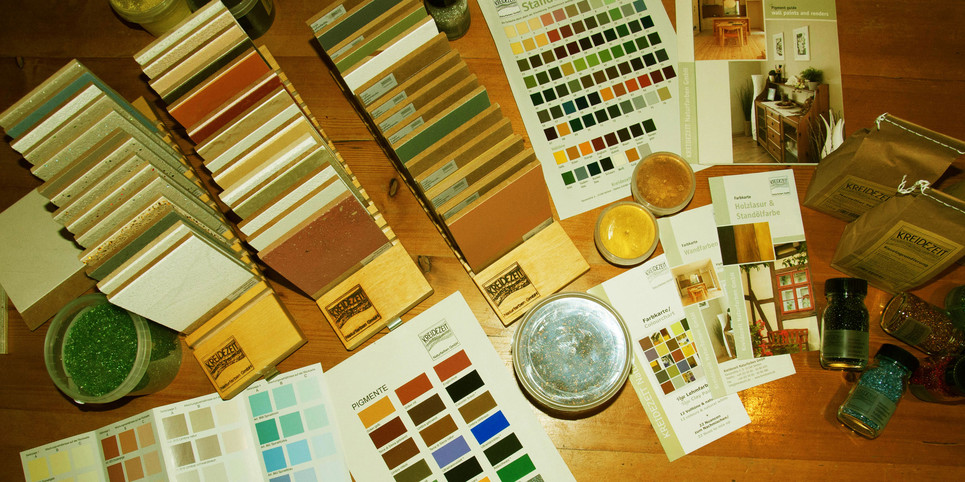 Das Sortiment von Kreidezeit bietet für Innen und Außen eine Vielzahl an Farben, Putze, Mittel zur Behandlung von Holz und Metall als auch Werkzeuge, Zubehör sowie Reinigungs-, Pflege- und Lösemittel.